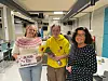 Prisverdig tilskot: Henriette Tvederøy (18) og Ann Katrin Leirvåg (14) takkar pent for pengegåva frå Søre Neset Sanitetsforening som dei fekk overrekt av Eva Maria Hauge.