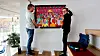 Opp på veggen: Pushwagner-måleriet til kommunen blir no hengd opp. Vegard Skorpen og Jørgen Larsson handterer verket forsiktig, og sjølvsagt er hanskane på.Benjamin Søgnen Olsen