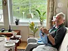 Gatehospital: 84 år gamle Jonvald Øvreeide er nøgd så lenge han har nokon å strikka til. I det siste har han byrja å strikka for eit gatehospital i Arna.Kenneth Svenningsen