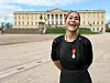 Patricia Langeland møtte stolt opp utanfor slottet før møtet med kongen og dronninga. Vidar Langeland/Privat Sat to timar ved sida av kongen: – Eg klarte sjølvsagt å bryta etiketten Anne Marie Aarøen Vangsnes Anne Marie Aarøen Vangsnes Anne Marie Aarøen Vangsnes Journalist Anniken Steen Birkhaug Anniken Steen Birkhaug Anniken Steen Birkhaug Journalist Publisert 04.11.2025 - 13:14 Sist oppdatert 04.11.2025 - 13:14 kong harald oseana kunst- og kultursenter kultur slottet patricia langeland kongens fortenestmedalje