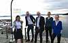 Tombre-jubileum: Familien Tombre feira med kollegaer laurdag. Her foreviga utanfor Oseana. Frå venstre - Tone Tombre, Ole Kristian Tombre, Håkon Tombre, Kari Kristine Tombre og Anne Marte Tombre.