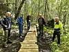 God gjeng: Her er gjengen som stilte opp då ei ny gangbru vart nødvendig på kyststien på Vinnes. F.v. Bjørn Kilen, Sæbjørn Tveit, Vidar Vindenes, Einar Vikøyr og Alfred Johannes Vindenes.