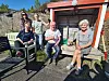 Godt humør: Det var godt humør på dugnadsgjengen denne ettermiddagen. Frå venstre - styremedlemene Maria Danielsen Myhre, Sølvi Løberg, leiar Annbjørg Håland Riise, Ole Bjørn Eikeland og Solveig Vindenes som gjorde dugnad. Margrethe Øhlander Ask sit også i styret, men hadde ikkje høve til å stilla denne dagen.