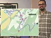 Mindre service frå BIR: Øystein Grytøyr synest det er dårleg service av BIR og endra henteordninga i Torkjelsvegen. På kartet her har han ringa ut med raudt der dei no har slutta å henta, og sett ein stor blå strek der BIRs einaste hentepunkt er no. Nedst til høgre i kartet ser ein nr 134 - bebuarane som no har 650 meter til hentepunktet.