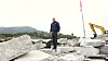 Naturstein: Meny Os-kjøpmann Jahn Ingolf Lyssand fortel at det går med fleire hundre meter med naturstein for å byggja muren ned mot busstoppet.Benjamin Søgnen Olsen