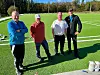 På dugnad: – Å arbeida for fellesskapen har alltid lege hjartet vårt nært. Denne veka var Ivar Hellebø (t. v.), Arne Midtun og Trygve Tveit (t. h.) blant dei frivillige som sytte for at arbeidet med Fusa idrettspark gjekk sin gang. Rolf Stian Torvestad i Sport Surface nummer tre frå venstre.