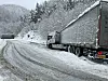 Blei bedne om å stoppa: Etter å ha køyrd seg fast fleire gonger, fekk dei to sjåførane beskjed om å stoppa — og ikkje forsøka å køyra vidare. Dei skal ikkje ha hatt gode nok dekk til å halda fram på føret som var laurdag formiddag.