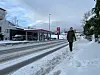 Tung snø: 15 år gamle Nora Wikestad klarer sånn noko lunde å fota seg på fortauet langs Byvegen, men ungjenta synest synd på gamle som må gå i slik tung snø.Kenneth Svenningsen