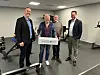 Set pris på engasjementet: Karsten Austevoll seier at han set pris på at politikarane kjem på besøk og høyrer korleis det går med verksemda. Frå venstre: Marius Arion Nilsen, Austevoll, Gustav Bahus og Helge Andre Njåstad.