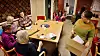Neste prosjekt: I øskja har leiar i Os Husflidslag, Sølvi Erdal, det neste strikkeprosjektet til kafégjengarane. Damene tek villig i mot.