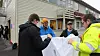 Omfattande: Kenneth Bruvik og Sveinung Toppe frå Bergen og Omland Friluftsråd, fekk bokstavleg tala hendene fulle då dei vitja Leiro tysdag. Her saman med to elevar frå Fusa vgs.Benjamin Søgnen Olsen