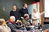 – Kjempespennande: – Det er eit kjempespennande prosjekt å jobba med. Eg håpar de vert inspirerte, sa Christian Tellefsen i Krohnås prosjekt (i midten). Kjetil Saunes i LAB Eiendom og plankonsulent Aina Tjosås deltok også i orienteringa.