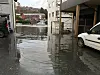 Flaum: Vassføringa er venta å auka i både små og store bekker og elver i løpet av torsdag og fredag. Her frå eit av tilfella der Oselvo har kome inn på Osøyro.Jostein Halland