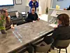 Det magiske bordet: Framsyn-rommet har over 50 tekniske hjelpemiddel. På biletet testar ordførar Trine Lindborg, Tove Gylløw og Sara Rasmussen frå velferdsteknologiprosjektet det "magiske bordet".