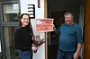 Overrasking: Marknadsleiar i Os & Fusaposten, Kine Evensen kom på døra med ei svært hyggjeleg overrasking til Hogne Eide i romjula.