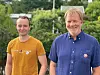 Øvst og yngst: Ordførarkandidat Nils Ove Lauvik (55) saman med yngstemann på lista deira, Dag Tore Markhus (26) frå Eikelandsosen. Markhus står på 21. plass på lista.