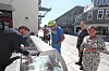 Flott opningsdag: Dei tre representantane frå Fana Sparebank, Stian Vik-Fjeldtvedt (serverer is), Vemund Grindskar og Lisbet Nærø, fekk ein flott opningsdag på Osøyro.