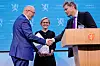 Rapport: Helse- og omsorgsminister, Ingvild Kjerkol, og forskings- og høgare utdanningsminister, Ola Borten Moe, mottar rapporten av Helsepersonellkommisjonens leiar Gunnar Bovim.