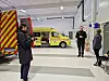 Info-TV: Opptak til Info-TV på Eikelandsosen brannstasjon med Varde Films Anders Fløysand (f.v.), brannsjef Espen Storum og programleiar Mari Lyssand.Ragnhild Stende Bjaadal