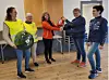 Overrekking: Her overleverer Anne Rødberg, Anne Grete Bergtun og Hilde Hansen - på vegner av dei fem sanitetsforeiningane - hjartestartaren til Vibeke H. Haugland og Monica Bu Hesthamar.