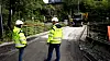 Stengd frå i dag av: Siril Langhelle og Odd-Helge Henriksen ved gamle Osbrua som i dag blei stengd for trafikk. — Det vil dessverre bli ein del graving ulike stader framover, seier Langhelle.