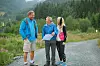 I bakgrunnen kjem det i løpet av hausten ny skogsbilveg, dersom alt går etter planen. Ove Frotvedt i FanAgro (t.v.) viser Lisbeth Moberg og Jermund Borgen kvar vegen kjem.