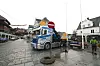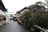 Oppdatert: Sentrumsjuletreet låg ei tid vassrett på lasteplanet mellom Apoteket og Malina.