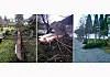 Store tre: Trea som har velta har ikkje ført til personskade eller skade på gravsteinar, men dei har falle over gravplassen, på kyrkjegardsmuren, straumlinja og vegen utanfor gravplassen.