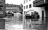 Springflo: Som vanleg er det fleire hus langs ved Oselva som er utsett når det blir ekstra høg springflo. Her frå ein gong på 1990-talet.Arkivfoto Os & Fusaposten