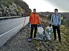 Plukka boss i nesten tre timar: Tore Johannes Matland og sonen Johannes med solid dugnadsinnsats onsdag. Dei fann mykje rart i naturen, som ikkje høyrer heime der.Privat