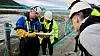 Skulen har blitt fiskeoppdrettar. Her er elevane på plass ved merdkanten for første gong