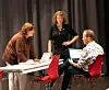 Sa ja: — Vi seier ja til utviding av skulen i eit folkehelseperspektiv. I Strandvik kan ungane gå eller sykla til skulen, sa ordførar Trine Lindborg (t.v.). Her i lag med Tina Bøe Buer (MDG) og Bjarte Samnøy (KrF).
