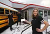 Tøft for restaurantbransjen: Marianne Berge kom med ei særs hyggjeleg overrasking til ER-AN Veikro torsdag føremiddag. I bakgrunnen Hanne Andersen og Arild Birkeland.Kenneth Svenningsen