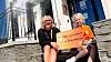 Ut av lufta: Tale Askvik Drønen (9) er ikkje heilt sikker på kva som gjorde at ho landa på talet 728. Her saman med banksjef i Fana Sparebank, Britt Nyheim.Benjamin Søgnen Olsen