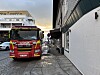 Jobbar på staden: Røyrleggjar og brannvesenet er i Brugata måndag formiddag, etter melding om stor vasslekkasje.