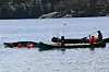 Innføring i speidar-livet: Om ikkje det var for latteren, kunne ein tru det var fare på ferde, men desse speidar-kurs-elevane viste til fulle at dei har lært seg å koma seg opp i kanoen igjen etter ein velt.