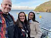 På besøk: Då fiskeriminister Marianne Sivertsen Næss (Ap) vitja Eide Fjordbruk onsdag, fekk ho ei innføring i Watermoon-prosjektet, og teknologien bak. Her saman med Sondre Eide og Maria Danielsen frå Eide Fjordbruk.