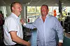 Det var god stemning då Osbadet feira seg sjølv tysdag. Her eit hyggjeleg møte mellom dagleg leiar Bård Alfstad og tidlegare dagleg leiar, Leif Gunnar Borgen.
