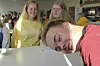 Det hender at Ingvar Mjanger Rafteseth byter internatmaten med ein grandis. Det får jentene i bakgrunnen til å rista oppgitt på hovudet.Anne Marie Aarøen Vangsnes