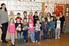 Bakerst frå.v. står assistent Helene Eide, Maria, Edvin, Vetle, Elisabeth, Emil, Kamilla, Sophia, Amalie, Jim Aron og læraren Hilde Vedholm. Framme f.v. står Anna, Joar, Sverre med klassebamsen "Teddy", Aurora, Brage, Mathias, Olivier og Jakob. Somo og Kacper var ikkje til stades.