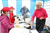 Her går det unna: Vaflane til Elise, Aletta, Emma, Ruth og Kjellaug fekk verkeleg bein å gå på. Køen på Kyrkjeflaten vart berre større og større.Camilla Kvamme