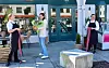 Naboen klypte snora: – Eg gler meg til å kjenna bollelukta i salongen, sa varaordførar Marie Lunde Bruarøy (H) då bakeriet vart opna. Lunde sin frisørsalong ligg like om hjørnet for bakeriet. Silja Døsen Moberg og Caroline Espelid Risvold heldt snora.