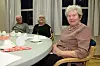 Favoritt: Bjørg Skauge kosar seg på Fusa Sanitetsforeining sin komlemiddag. – Komler er det beste eg veit, men eg lagar det ikkje så ofte, fortel Skauge. Atle og Eva Sagstad i bakgrunnen.Camilla Kvamme