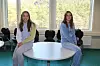 Kvar sin kohort: Helene Gjertinsen Klett (t.v.) og Celina Norheim Lunde har ikkje lov å vera nærmare kvarandre enn éin meter.Anne Marie Aarøen Vangsnes