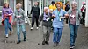 Set fart: Gjertrud Bu Håvik (i midten) set fart ut frå startblokkene saman med dei andre deltakarane i rullatorløpet. Frå venstre: Jostein Havsgård, Gjertrud, Anne-Siv Skåthun Berge og Inger Johanne Koldal.