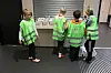 Gjer klar mjølka: Karianna, Kasper, William og Erik dobbelsjekkar at listene stemmer overeins med det som har kome opp i dei ulike boksane. Om litt kan elevar frå dei ulike trinna henta mjølka si.
