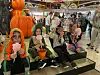 Halloween-feiring: Denne skumle (og søte) gjengen hadde kome seg heilt fremst i sukkerspinnkøen, og kunne dermed kosa seg med godsakene.Kenneth Svenningsen