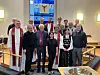1. desember er det nøyaktig 25 år sidan Nore Neset kyrkje vart vigsla av dåverande biskop Ole D. Hagesæther (i midten). Her i lag med representantar frå Os sokn.