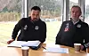 Jobbar med logistikk: Ruben Hetlevik og Svein Kollen fortel at dei gjer alt dei kan for å vera klare til fotballen startar opp att.