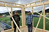 Supert supplement til idrettsanlegget: Endre Brenne og Øystein Grytøyr gler seg til å kunna husa eldre og menneske med nedsett funksjonsevne i dette rommet over den nye kiosken på Kuventræ.